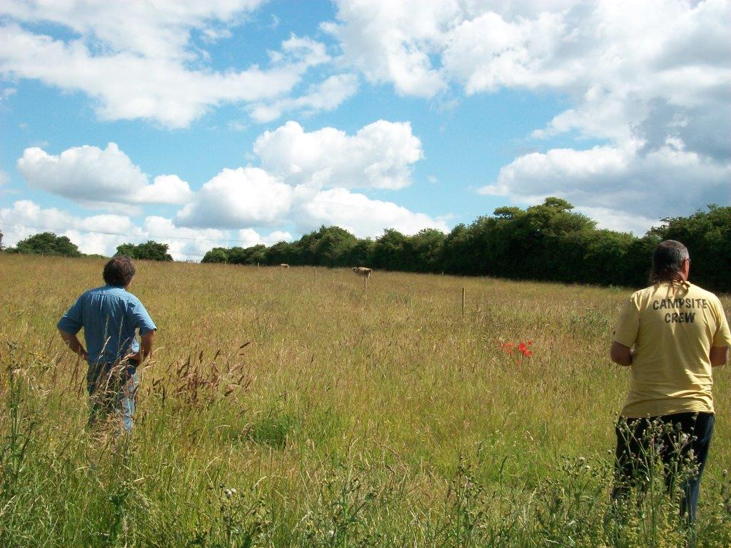 You pitch your tents (you choose the pitch) on a grass field surrounded by tree-hedges about a mile from the main A354 Salisbury to Blandford roa